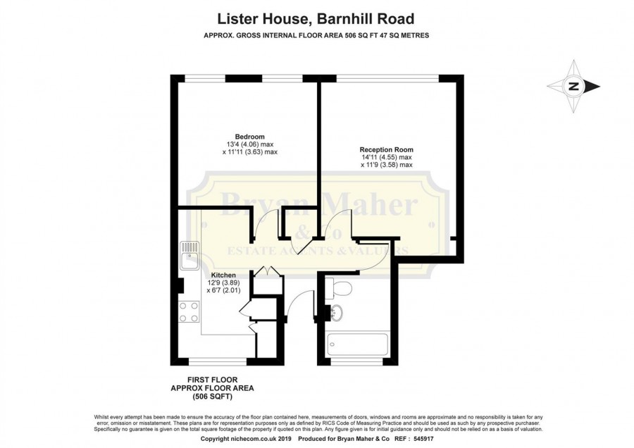 14' 6" x 10' 1" (4.42m x 3.07m) A bright and spacious room with window to rear aspect with lovely views extending to Wembley Stadium, Laminate wood flooring, power points, television and aerial point, radiator, open arch leading into the kitchen :-