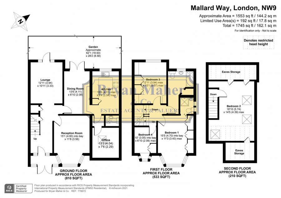 19' x 14' (5.79m x 4.27m) Rear aspect double glazed window, front aspect Velux windows, built in storage, inset ceiling spotlights.