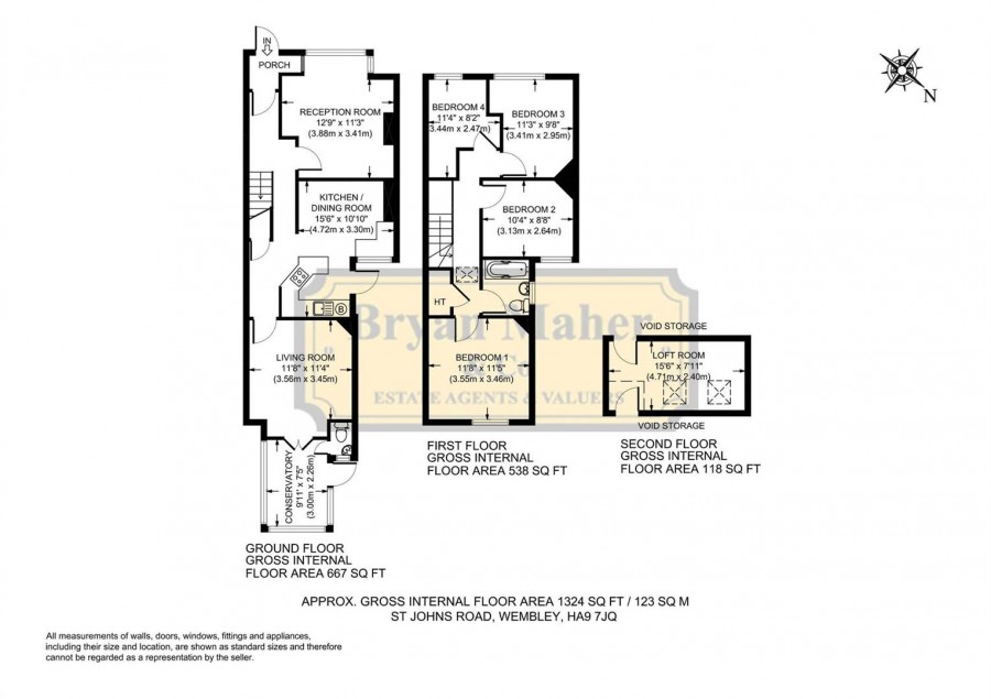 17' 2" x 7' 5" (5.23m x 2.26m) Front and rear aspect window's wash hand basin.