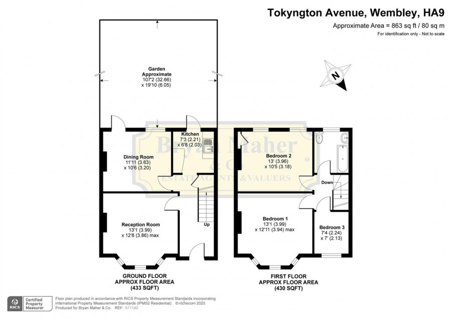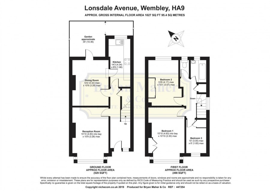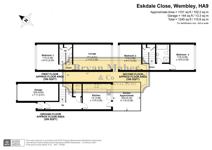9 4' x 8 3' Rear aspect triple glazed window, tiled flooring, range of eye and base level units, single drainer stainless steel sink unit with mixer tap, built in oven and hob, space for washing machine and fridge freezer, door to rear garden