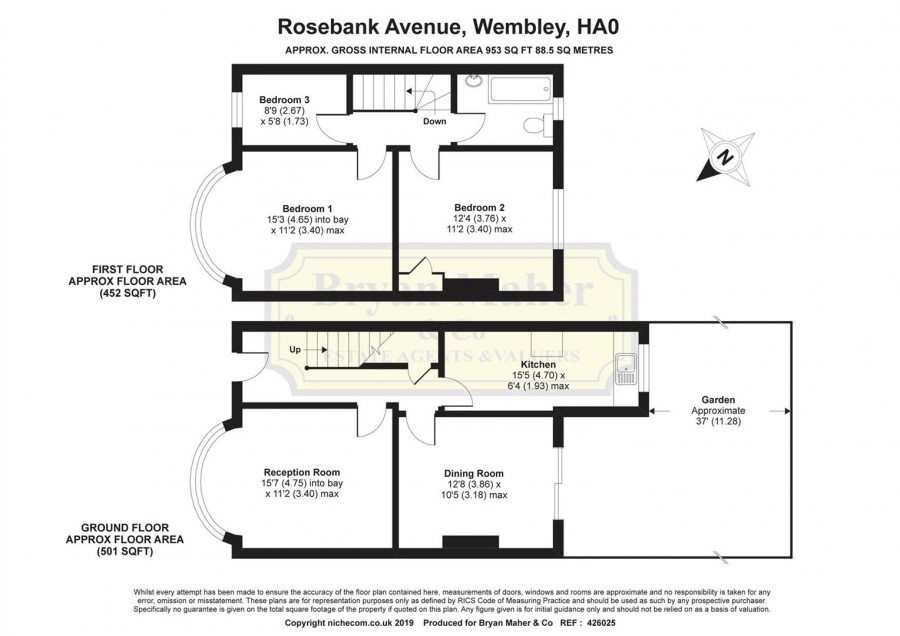 15' 8" x 11' (4.78m x 3.35m) Front aspect double glazed bay window, radiator.