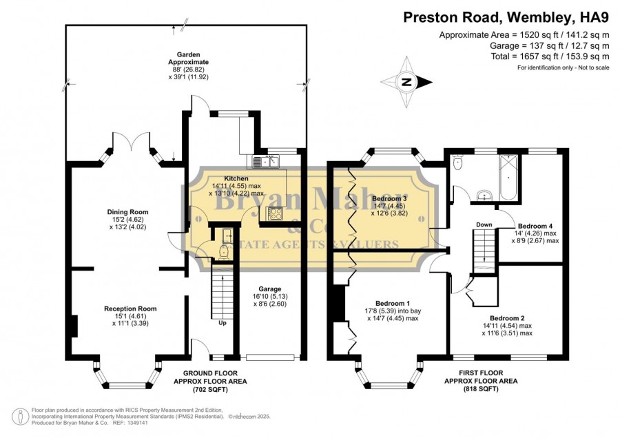 *A WELL EXTENDED FOUR BEDROOM SEMI DETACHED PROPERTY WITH A GARAGE VIA YOUR OWN DRIVE* We are delighted to have been favoured with instructions to bring to the market this superb family home located on the upper slopes of the Barn Hill Estate. Internally you will find a welcoming entrance hall, two reception rooms, an extended fitted kitchen, cloakroom, four first floor bedrooms and a family bathroom with a separate W/C. Externally you will benefit from off street parking leading to the garage and a large garden to the rear. The property is conveniently positioned within close proximity to highly regarded Schools including the Lycée International de Londres Winston Churchill, local buses, tube stations including Wembley Park Metropolitan & Jubilee lines, Fryent Country Park and the London Designer Outlets offering an array of popular shops & restaurants. We strongly advise an early viewing of this CHAIN FREE property.